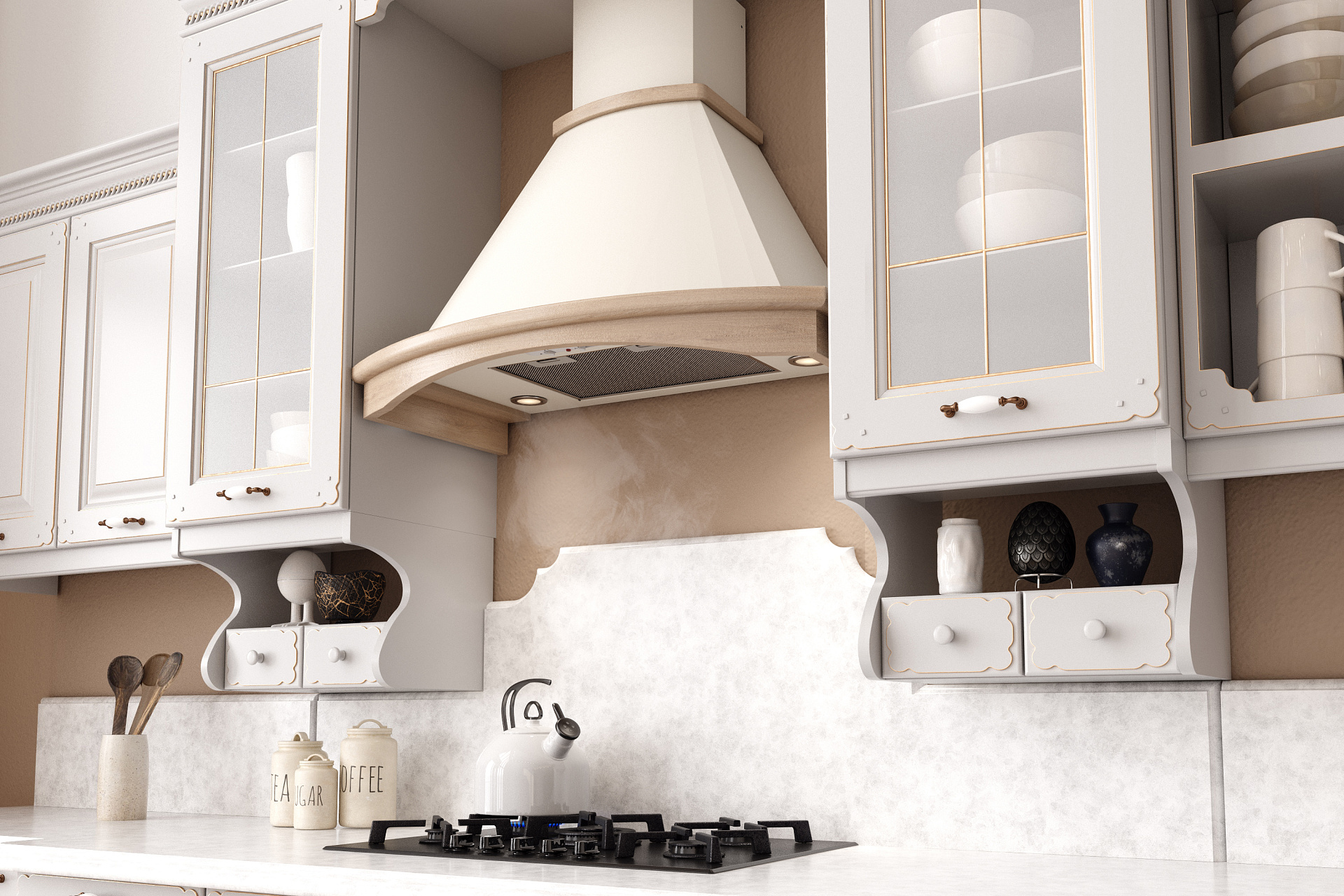 Для классических вытяжек используются материалы дуба или бука - древесина, которая устойчива к воздействию влаги, эластична и отличается высокими декоративными свойствами.